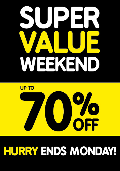 Don’t miss the Super Value Weekend – must end Sunday 24th February.