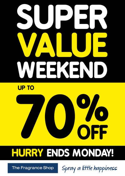 The Fragrance Shop is hosting a Super Value Weekend Head in-store for huge savings with upto 70% off RRP.